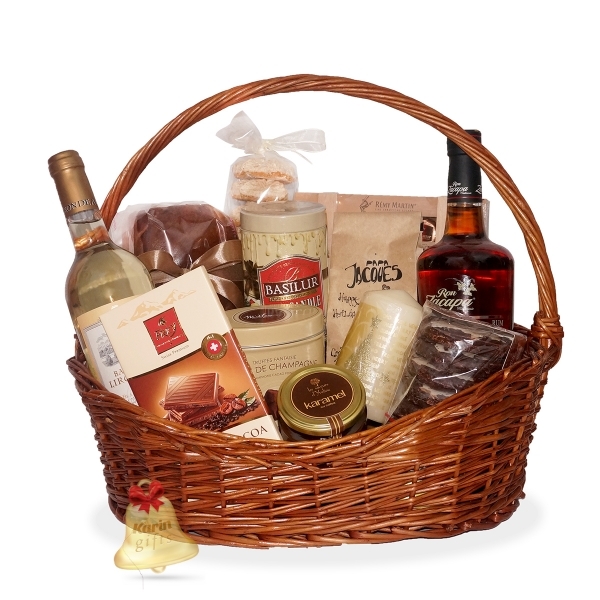Christmas Ginger este un cadou deosebit, ce contine specialitati dulci, precum cozonac, biscuiti deliciosi, turta dulce, praline fine cu lichior, trufe, ciocolata si caramel delicios cu cafea, toate acompaniate de un vin savuros, un rom excelent, o cafea aromata speciala si un sortiment deosebit de ceai. Cosul cadou este decorat si ambalat manual, in spiritul Craciunului, gata de a fi oferit cu ocazia sarbatorilor de iarna.