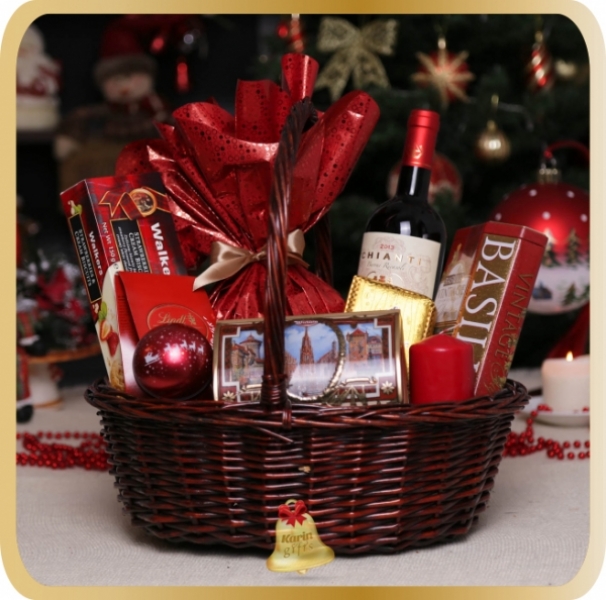 Deep Red este un cadou deosebit, ce contine specialitati dulci precum panettone, turta dulce, praline, ceai, fursecuri, cafea, migdale in ciocolata, toate acompaniate de vin rosu. Cosul cadou este ambalat si decorat manual, in spiritul Craciunului, gata de a fi oferit cu ocazia sarbatorilor de iarna.