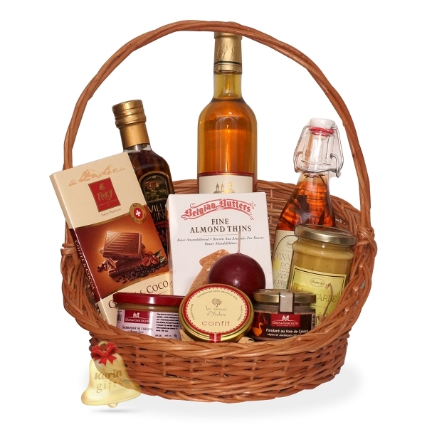 Gourmet este un cadou savuros, special creat pentru iubitorii de gusturi fine, ce contine specialitati culinare frantuzesti, precum otet cu aroma de ierburi de Provence, mustar cu branza Roquefort si nuci,fondant cu fois gras de rata, piftie de rata si specialitati dulci, precum confit si ciocolata, toate acompaniate cu succes de un vin dulce romanaesc. Cadoul este ambalat si decorat manual, gata de a fi oferit cu ocazia sarbatorilor de iarna.