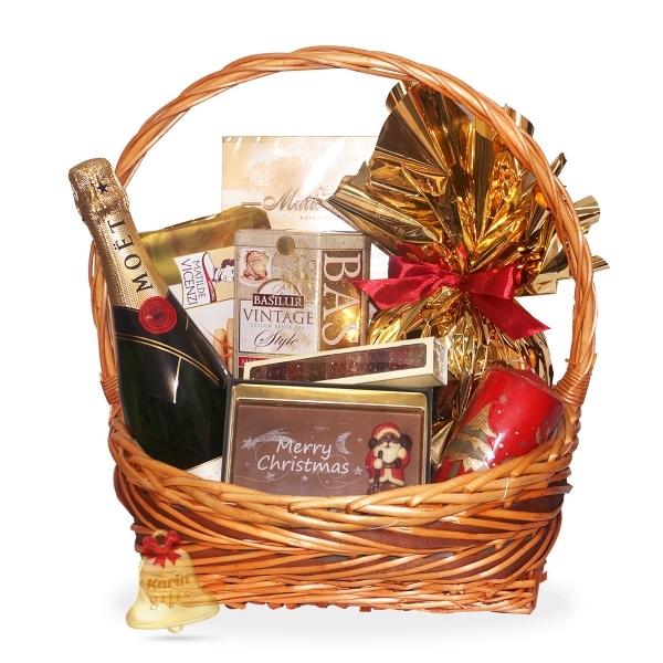 Happy Santa este un cadou deosebit, ce contine specialitati dulci, precum panettone, fursecuri delicioase, praline fine, ciocolata de Craciun si pates de fruits, toate acompaniate cu succes de o sampanie savuroasa premium si de un sortiment special de ceai negru cu arome de fructe. Cosul cadou este decorat si ambalat manual, in spiritul Craciunului, gata de a fi oferit cu ocazia sarbatorilor de iarna.