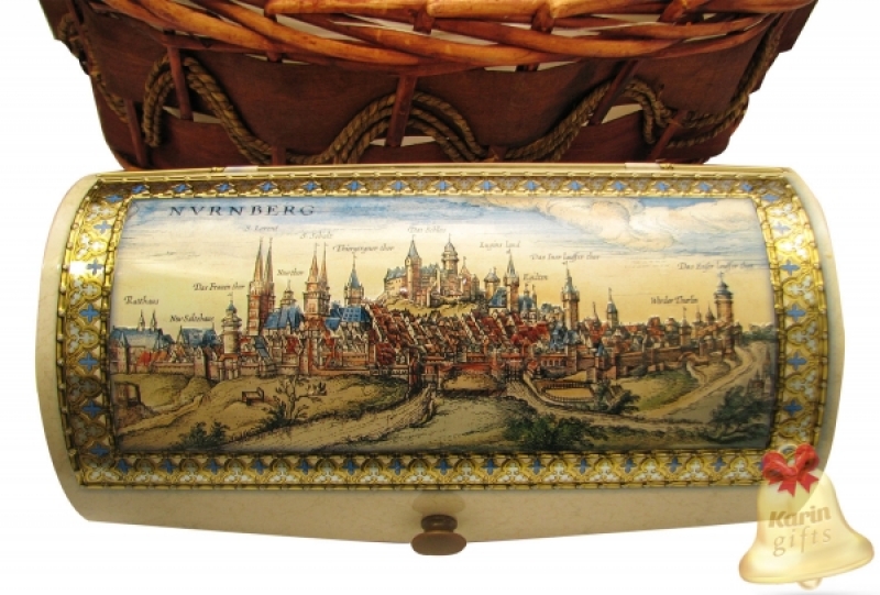 Lebkuchen Schmidt Metal Telegram Box este o cutie metalica deosebita, ce are embosata panorama orasului Nuremberg. Pachetul contine sortimente delicioase de turta dulce si turta dulce invelita in ciocolata fina sau combinata cu migdale. Mesajul pe care il trimite aceasta cutie este o incantare savuroasa de turta dulce.