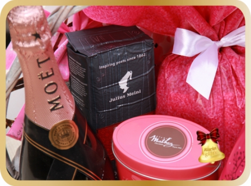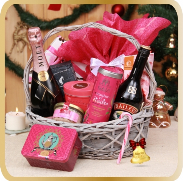 Pink Christmas este un cos cadou deosebit ce contine specialitati dulci precum panettone, zmeura in ciocolata, trufe de ciocolata cu macarons si multe altele. Acesta mai contine si delicatese precum terina de bibilica cu usturoi roz. Toate acestea sunt acompaniate de o sampanie rose rafinata, un liqueur si un ceai cu arome distinse. Cosul este decorat manual si transformat intr-un cadou special pentru sarbatorile de iarna!