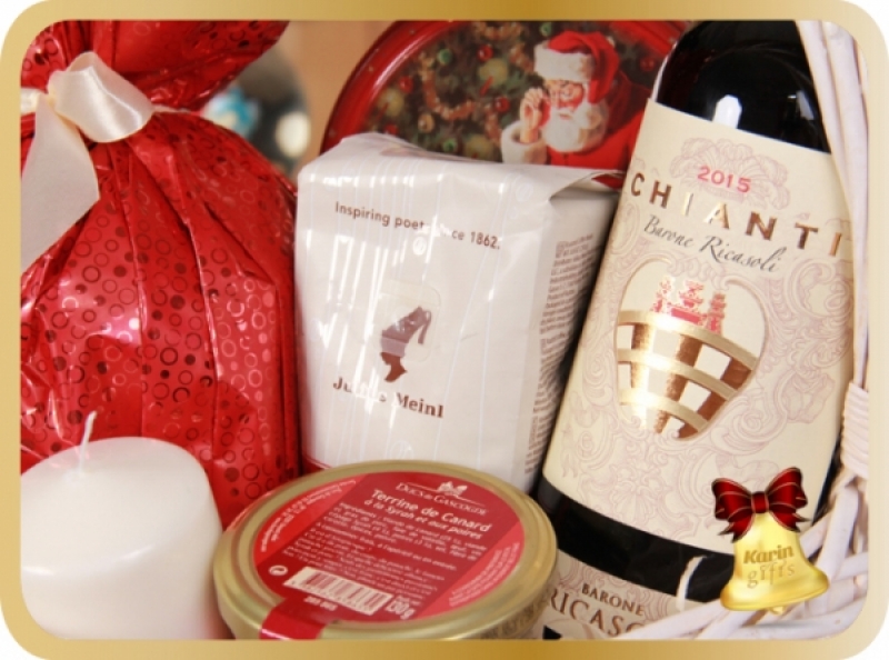 Red Lights este un cos cadou special ce contine delicii precum panettone cu portocala, fursecuri si terina de rata cu vin syrah. Toate acestea sunt acompaniate de un vin rafinat si o cafea aromata. Cosul este decorat manual si transformat intr-un cadou special pentru sarbatorile de iarna!