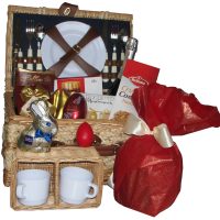 - Cos de picnic pentru 2 persoane cu accesorii (farfurii, furculite, cutite, lingurite si cani)