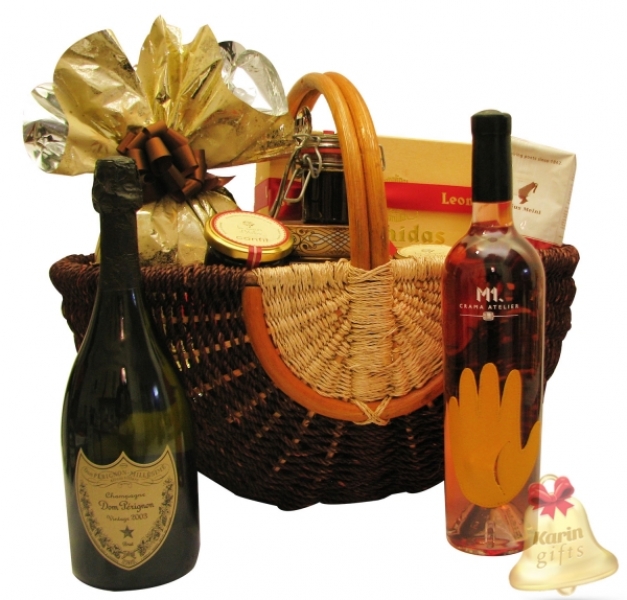 Ultra VIP este un cadou exceptional, o colectie deosebita de specialitati dulci, precum praline fine, dulceturi artizanale, caramel, confit, turta dulce si panettone, toate acompaniate de cafea macinata aromata, o sampanie de prima clasa si un vin rose in editie speciala. Cosul cadou este ambalat si decorat manual, gata de a fi oferit cu orice ocazie speciala.
